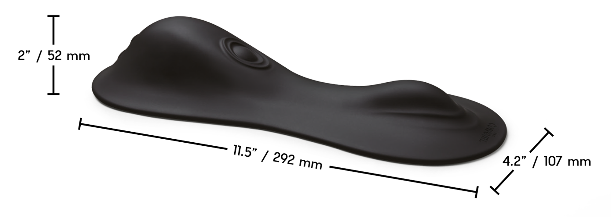 Der Rumbler hat eine Länge von 29,2 cm, eine Breite von 10,7 cm und eine Höhe von 5,2 cm – eine handliche Größe, die sowohl gute Stabilität als auch optimalen Kontakt zum Körper gewährleistet.