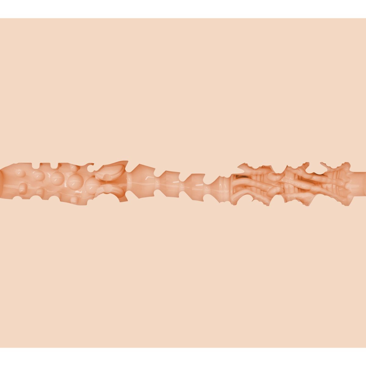Insidan är detaljerat utformad med varierande kanaler och tryckpunkter som ger stegvis stimulans genom hela rörelsen. Strukturen skapar naturligt motstånd och en jämn känsla oavsett tempo, vilket ger en kontrollerad och realistisk upplevelse.