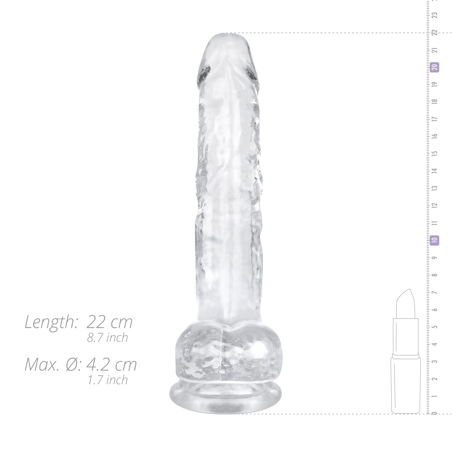 Denna transparenta jellydildo kombinerar en realistisk design med ett mjukt och följsamt material som gör användningen både enkel och njutbar. Den tydliga ollonformen och de markerade ådrorna ger en verklighetstrogen känsla, medan pungen vid basen gör upplevelsen ännu mer autentisk.