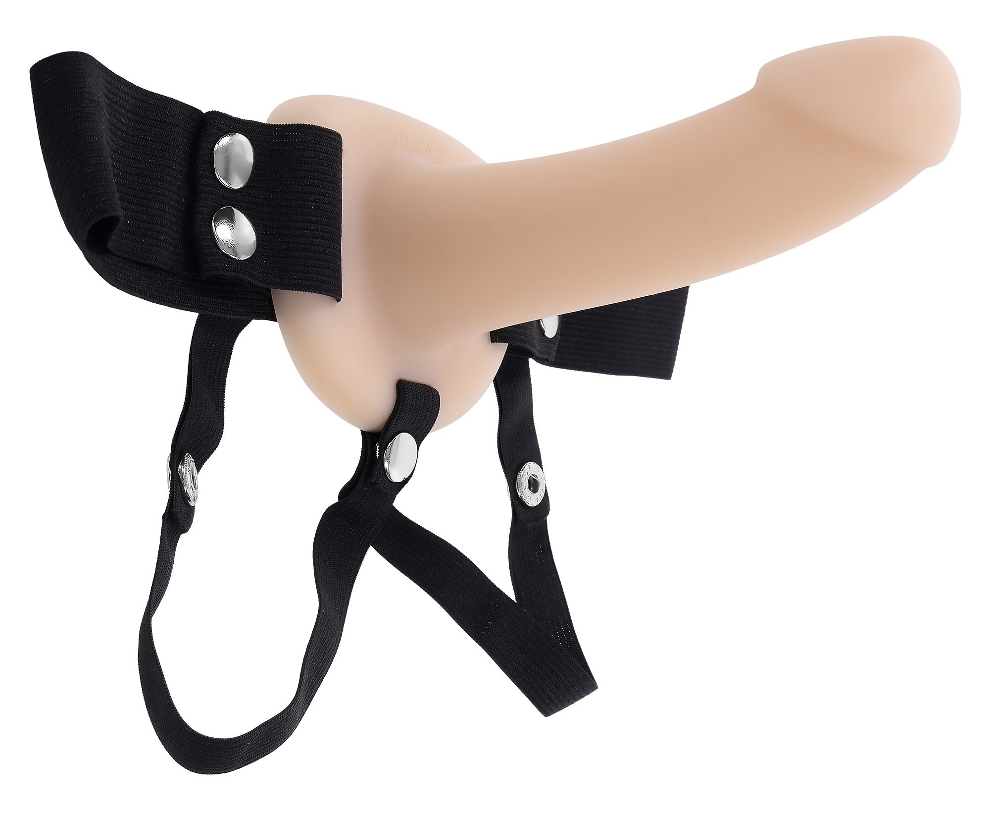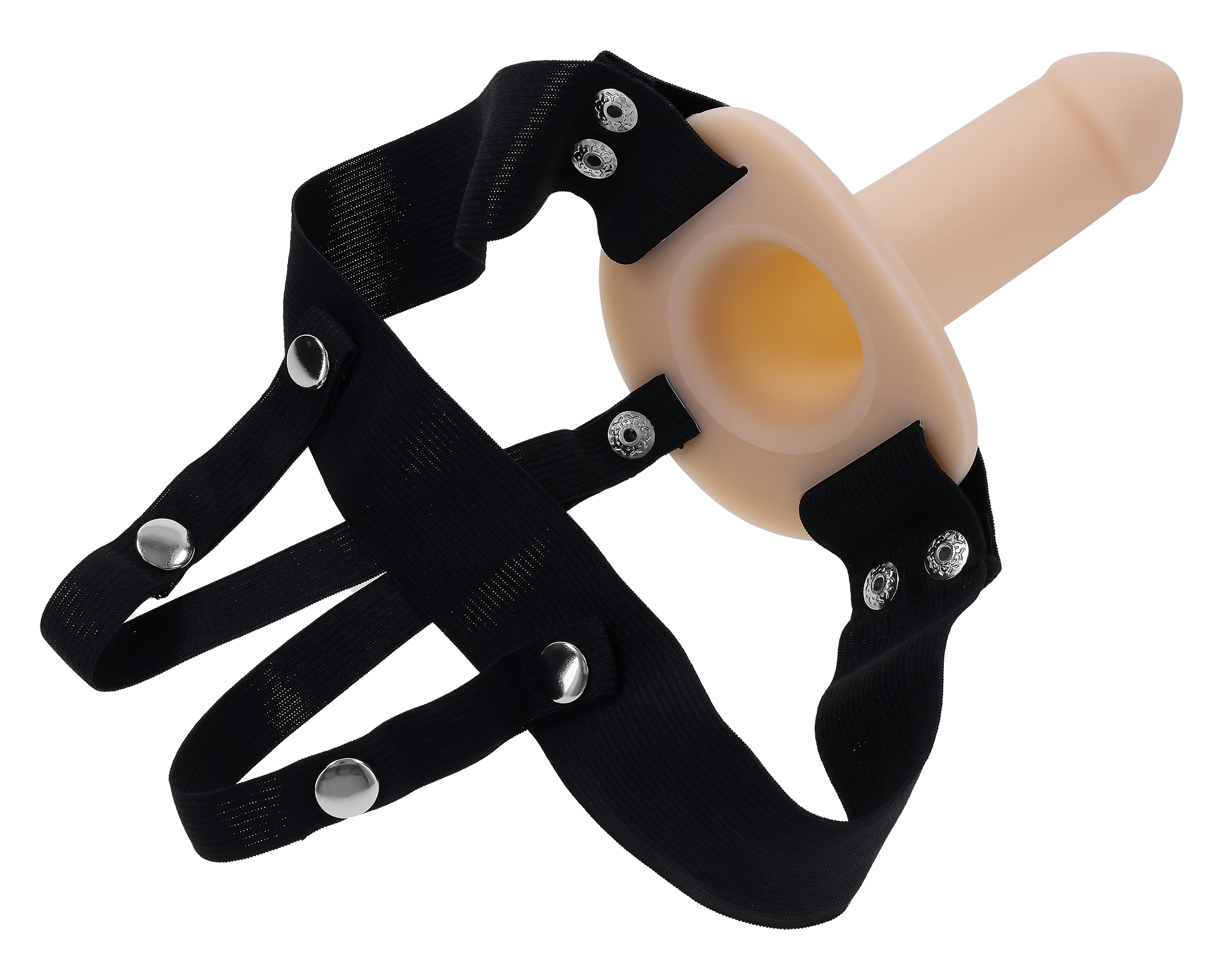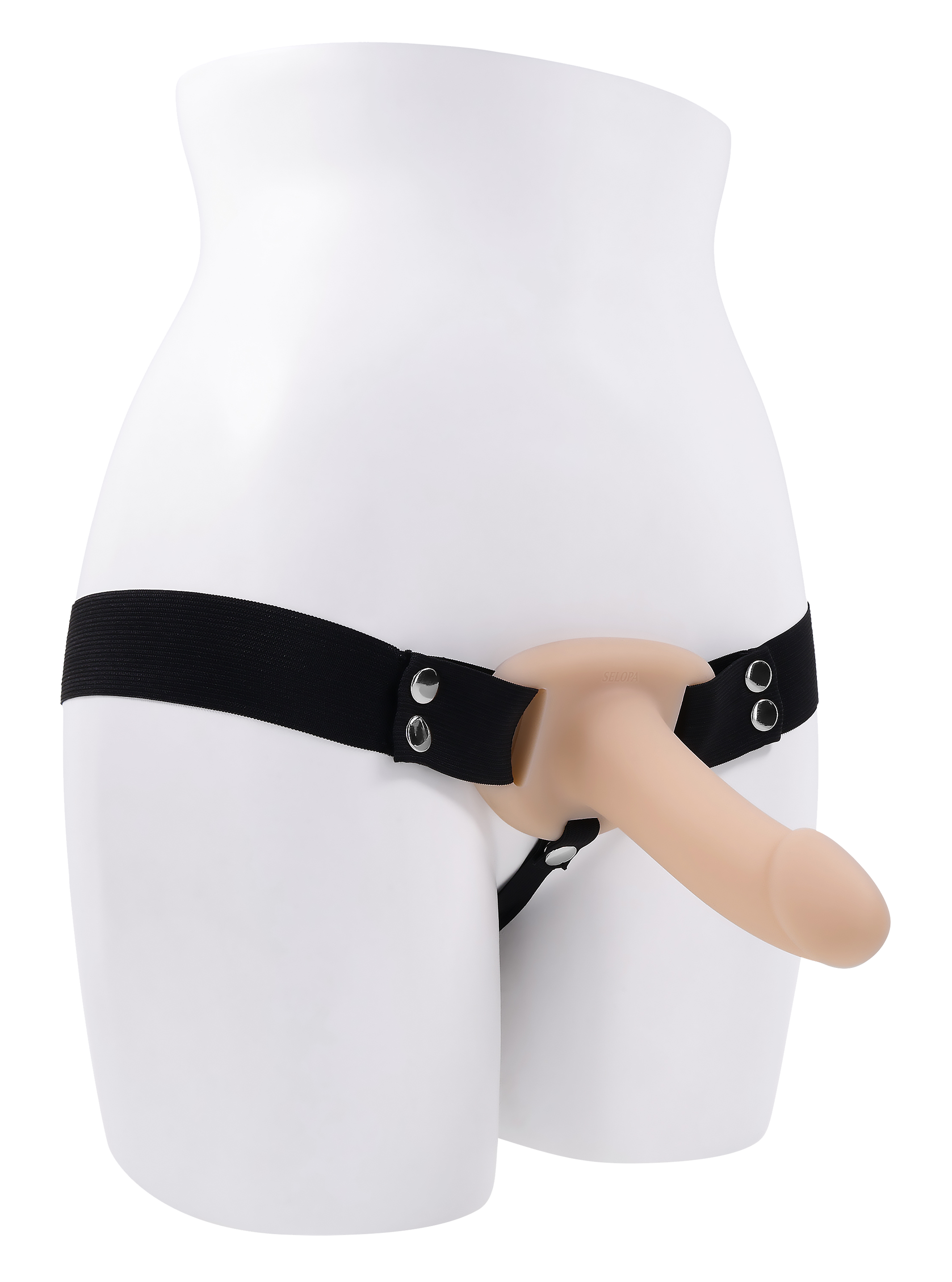 Our First Hollow Strap On Light 6 Inch är en bärbar strap-on med ihålig konstruktion, designad för att ge extra längd och stadga. Den släta ytan och den lätt avsmalnande toppen gör den enkel att använda och bekväm vid penetration.
